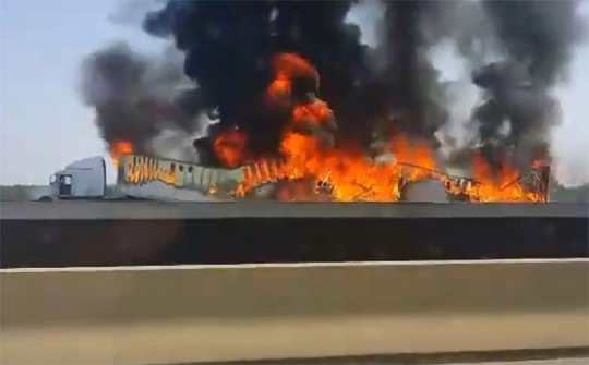Pictured: A fiery crash on I-65 Thursday. Photo courtesy Barry Gallant for NorthEscambia.com, click to enlarge.