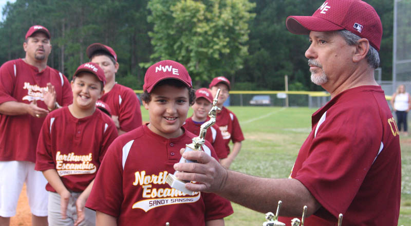The Northwest Escambia league at Bradberry Park in Walnut Hill closed out their season with a bang Thursday night. Each player received a trophy prior to a fireworks show.