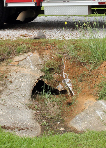 Back on May 15, the shoulder of Highway 97 about a mile south of Ernest Ward Middle School collapsed in an existing 50-foot deep gully. Sometime Thursday or early Friday, the situation worsened, with a part of a paved shoulder falling into the hole.