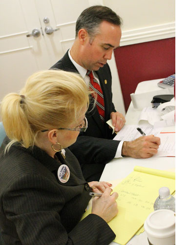 Pictured: Escambia County Supervisor of Elections David Stafford and Century Town Clerk Leslie Gonzalez review final vote totals in 2011 at the Century Town Hall. NorthEscambia.com photo, click to enlarge.