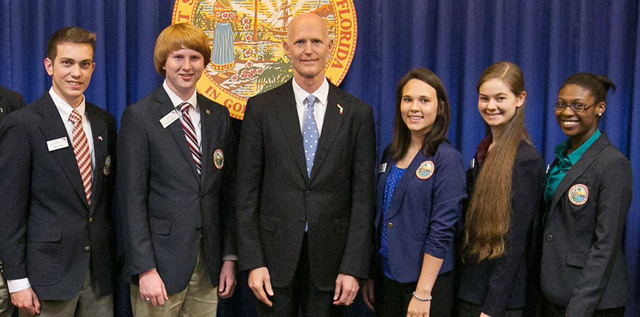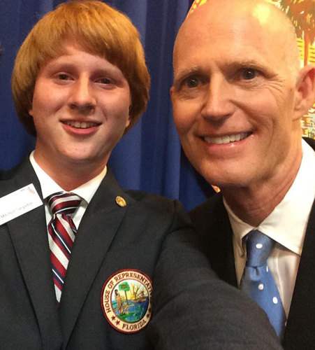 Pictured top. Florida House Messenger Mitchell Singleton (second from left) with other messengers and Gov. Rick Scott. Pictured inset: Singleton’s “selfie” photo with Scott. Courtesy photos for NorthEscambia.com, click to enlarge.