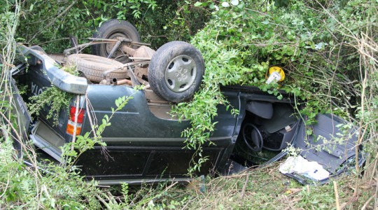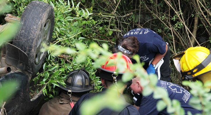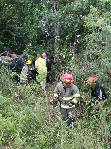 An 81-year old female lost control, left the roadway and flipped her vehicle upside down into heavy brush. It took firefighters about 20 minutes to cut the brush using chainsaws and extricate the woman from the vehicle.