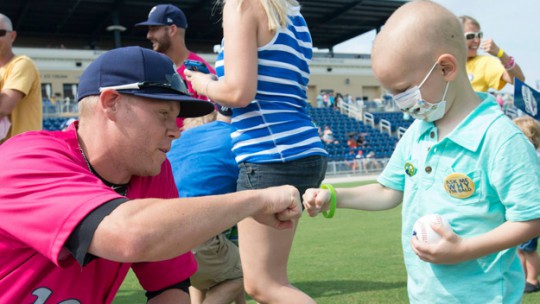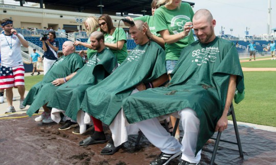 Mattair had helped push for the Blue Wahoos to support 4-year-old Carolyn Hendrix who had a rare cancer. She was declared cancer free at the end of May. And Sunday, Mattair, Greene and Josh Fellhauer, along with season ticket holder JRoAnne Bergman shaved their head in front of fans and the Hendrix family to raise money for the St. Baldrick’s organization.