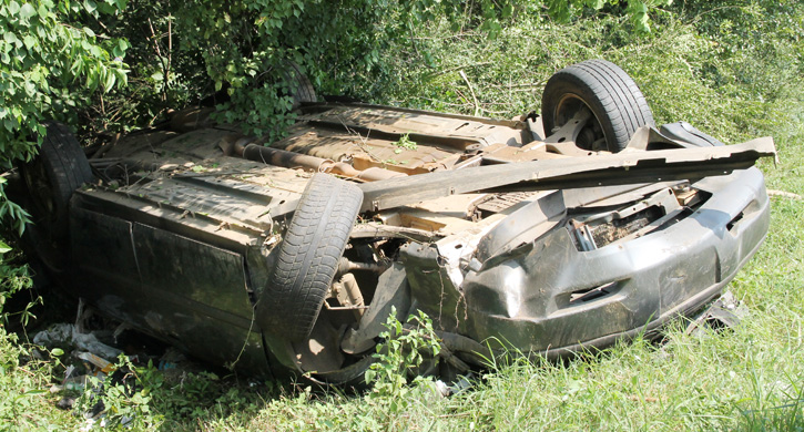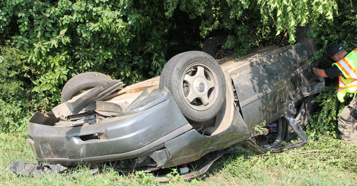The accident was reported about 2:50 p.m. on Highway 97 just north of Highway 4. The driver of a car lost control and flipped into a ditch, with the vehicle coming to rest upside down in partial wooded area.