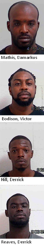 ECSO Investigators traveled to Georgia. Based upon interviews, forensic evidence and the recovery of stolen items, four arrests were made: Damarkus Larrell Mathis, 26, Bainbridge GA; Victor Lamar Bodison, 36, Bainbridge, GA; Derrick Wilson Hill, 36, Orlando; amd Derrick Joseph Reaves, 24, Orlando. Investigators believe these suspects are responsible for additional burglaries across the Southeast, and the investigation is ongoing.