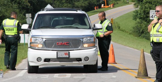 Pictured top: Deputies and a state probation officer check on a man on probation in Molino Thursday morning. Pictured below: Deputies conducted a checkpoint at the intersection of Highway 95A and Molino Road. NorthEscambia.com photos, click to enlarge.