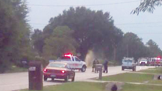 Pictured: Gas can been seen spewing out of the ground Tuesday evening following a lightning strike on Pine Forest Road. Reader submitted photos by Renee Maneen for NorthEscambia.com, click to enlarge.
