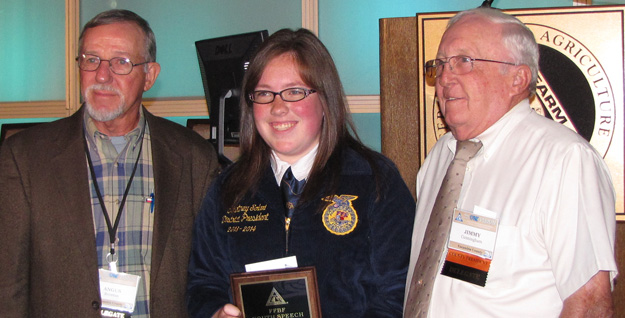 Pictured: Nort hview student Courtney Solari placed second in the state last year in the Florida Farm Bureau Speech Contest. She is pictured with Northview FFA Alumni President Angus Brewton (left) and Escambia County Farm Bureau President Jimmy Cunningham. NorthEscambia.com file photo, click to enlarge.