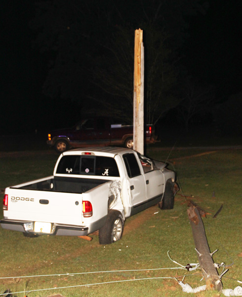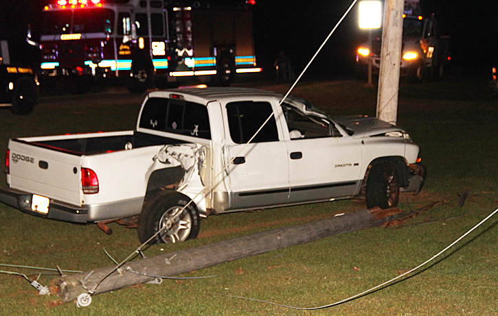 The driver of a Dodge Dakota pickup truck lost control at the intersection of West Highway 4 and Byrneville Road and struck a power pole about 12:45 a.m. The driver was not injured and refused transport to the hospital.