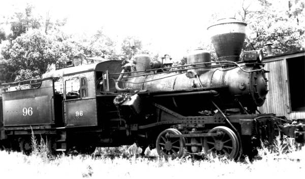 Below is Escambia Railway Engine Number 96, photographed in Century on August 23, 1942. The engine was formerly the T.R. Miller Mill Co. #7 and was used as a woods logging engine. It was retired sometime prior to 1945 and scrapped in April 1957.
