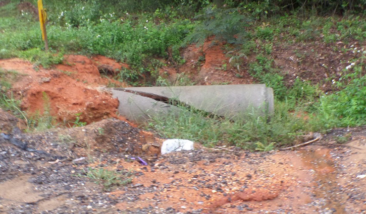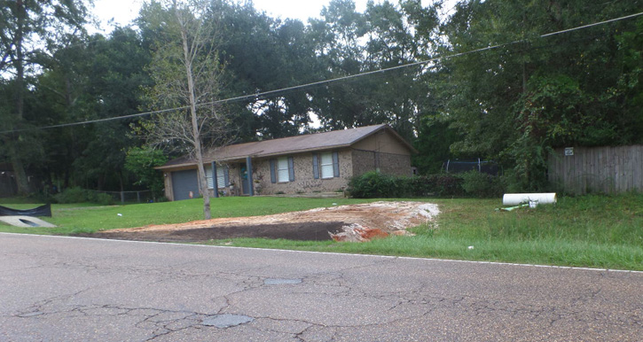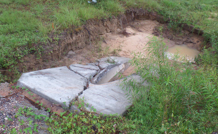 Pictured top, inset and below: Washouts and damaged construction work along Jacks Branch Road. Pictured middle bottom: A driveway that’s been repaired multiple times along Jacks Branch Road. Pictured bottom: A construction debris pile in place so long that weeds are growing out of it. Reader submitted photos for NorthEscambia.com, click to enlarge.