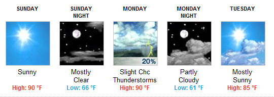 - Sunday Sunny, with a high near 90. Calm wind becoming east around 5 mph in the afternoon.