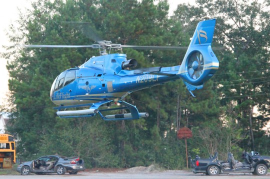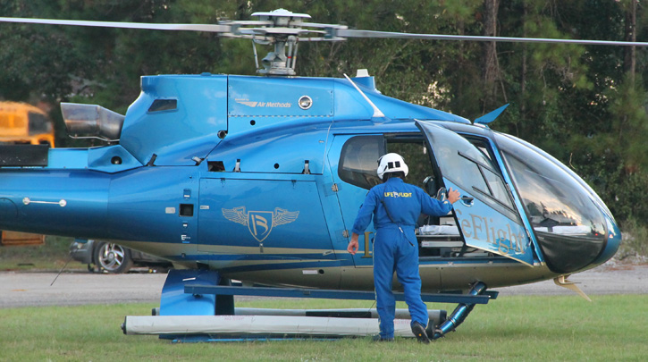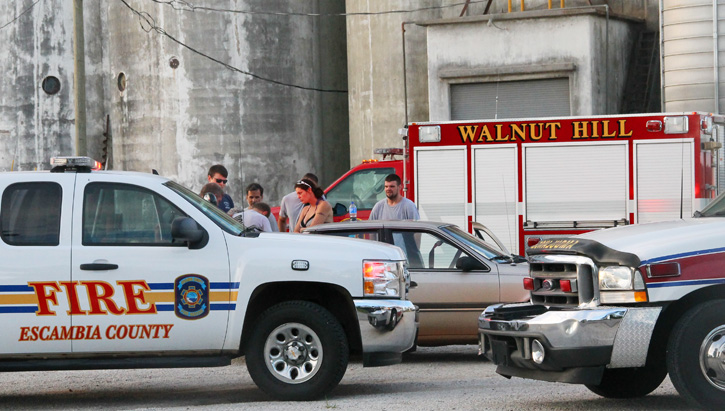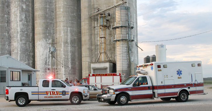 He was driven several miles from Pineville Road to Escambia Grain on Arthur Brown Road where he met first responders. He was then transported by Atmore Ambulance to the Walnut Hill Station of Escambia Fire Rescue and airlifted by LifeFlight to Baptist Hospital in Pensacola.