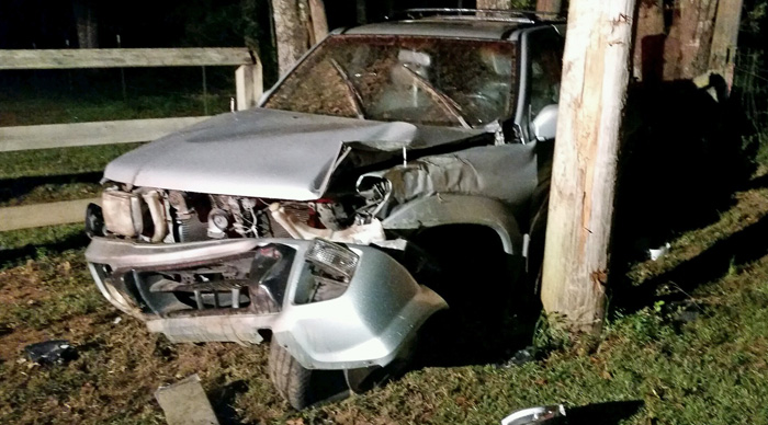 The driver lost control and struck a utility pole on in the 1400 block of South Highway 97 near Kingsfield road. The driver was transported by ambulance to an area hospital with non-life threatening injuries.