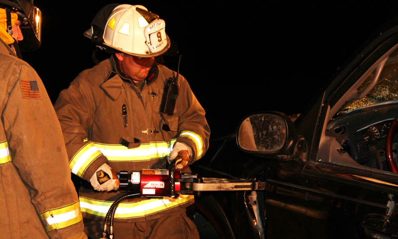In one exercise, a passenger car rear-ended a school bus, with the car and driver becoming lodged under the bus. In order to reach the driver, firefighters were forced to cut and remove the vehicle’s trunk, roof and seats, in order to rescue the passenger.