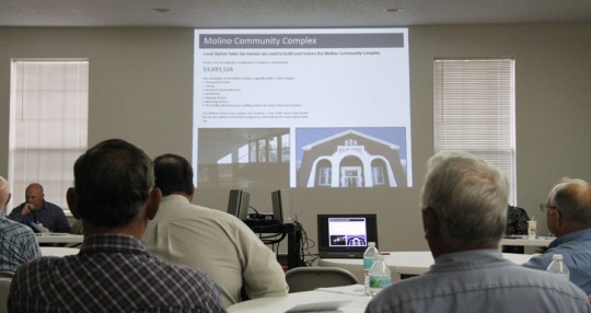 The first in a series of Local Option Sales Tax public meetings was held Monday night in Walnut Hill with Escambia County Commissioner Steven Barry and a host of county officials.