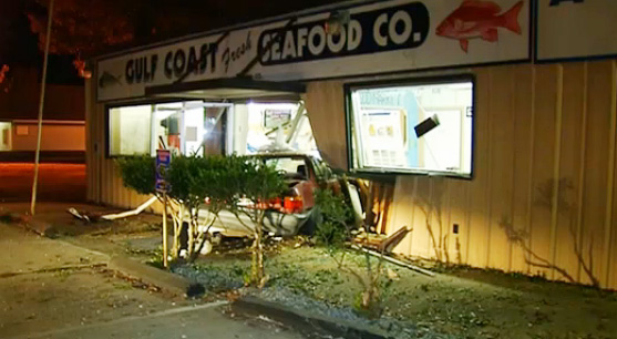 The Florida Highway Patrol said 59-year old Harvey Milton Jeffcoat of Pensacola crashed his 1991 Honda Accord into the Gulf Coast Fresh Seafood Company at 2250 West Nine Mile Road after being involved in an accident at the intersection of West Nine Mile Road and Pine Forest Road about 10:30 p.m. He was transported to West Florida Hospital with serious injuries by Escambia County EMS.