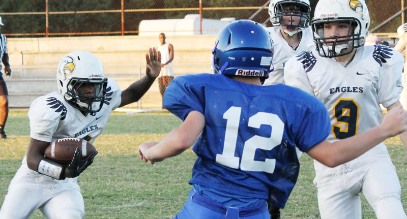 The Ernest Ward Eagles defeated the Jay Royals in middle school football Tuesday evening in Walnut Hill, 24-12.