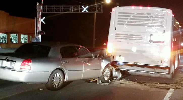 The driver of a car apparently rear-ended the bus at the railroad tracks on Highway 29 just south of Muscogee Road just before 8 p.m. The driver of the bus was transported to Sacred Heart Hospital by Escambia County EMS with injuries that were not considered serious.
