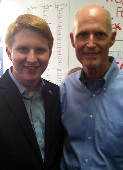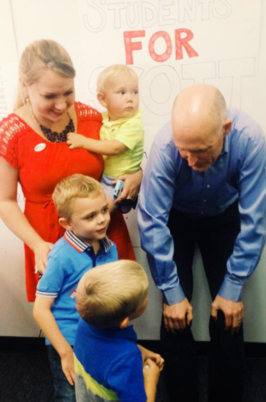 Pictured top: Rick Scott addresses the press at his Pensacola victory headquarters lateĀ Tuesday afternoon as he wrapped up his campaign. Pictured top inset: Scott visits with a family in Pensacola. Pictured bottom inset: Scott poses for a photo with Northview High School student Mitchell Singleton. NorthEscambia.com photos, click to enlarge.