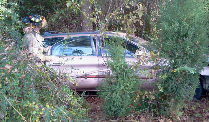 An elderly female driver escaped injury when she lost control and ran into a wooded area on Highway 29 at Main Street in McDavid early Thursday afternoon. There were no other passengers or vehicles involved. The McDavid and Century stations of Escambia Fire Rescue, Escambia County EMS and the Escambia County Sheriff’s Office responded to the crash. Photos for NorthEscambia.com, click to enlarge.