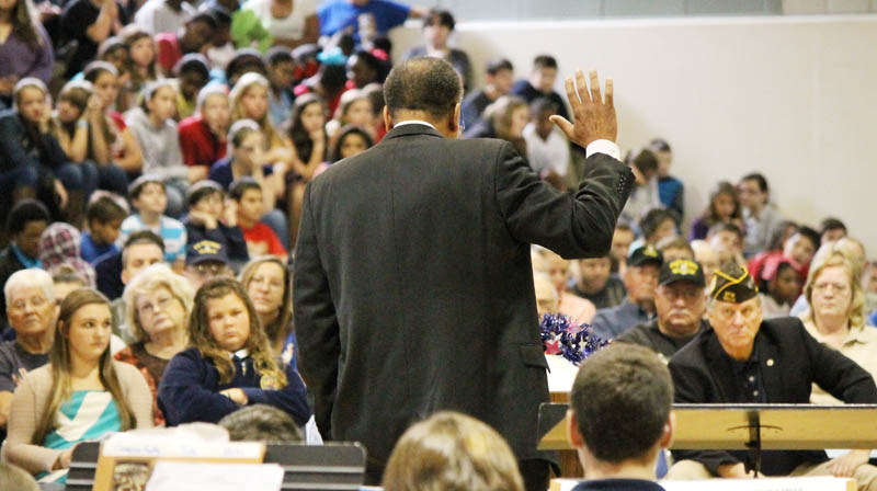 “It’s a great day to be here, in the United States of America,” guest speaker retired Navy Capt. Frank Smith told the student body and their veteran guests. “Because we truly do live in the land of the free.”