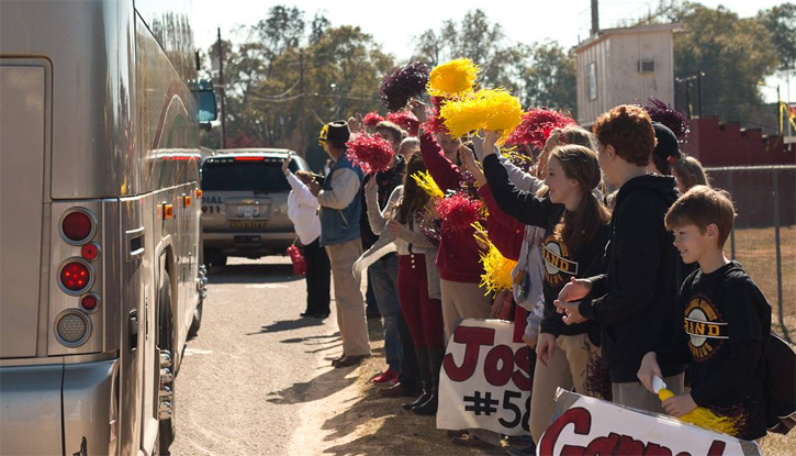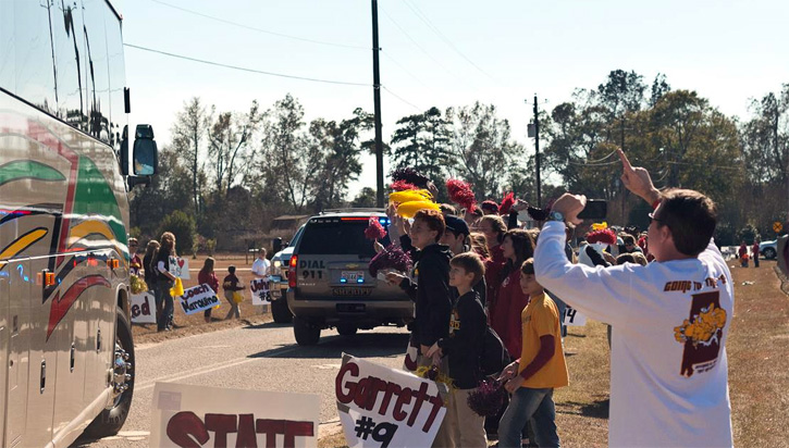 Fans lined the highways to wave and wish good luck to the Cougars. Escambia Academy will play Bessemer Academy at 7 p.m. at Troy’s Veterans Memorial Stadium, home of the Troy State Trojans.