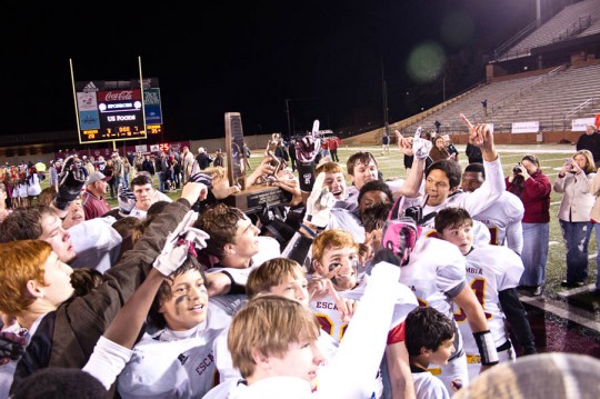 The Escambia Academy Cougars from Canoe, AL, won the AISA Class AAA state championship Friday night with a 35-28 defeat of Bessemer Academy at Veterans Memorial Stadium in Troy, AL.