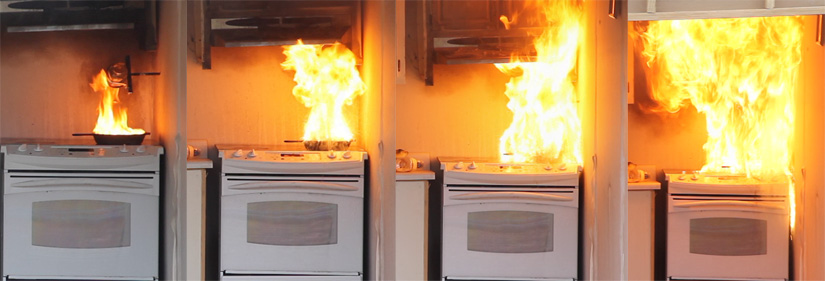 A grease fire and residential sprinkler system demonstration. Click here to return to story.
