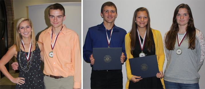 Pictured top: Northview FCA award winners (L-R) Lakelynn Parker and Trevor Levins, golf; Brandon Korinchak and Mary Sullivan, cross county; and Kyndall Hall, volleyball. Pictured below: Northview banquet attendees. Photos by Barbara Korinchak for NorthEscambia.com, click to enlarge.
