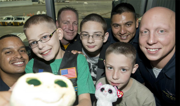 Picture above and below: Preparing to board the Snowball Express Thursday at the Pensacola International Airport. Pictured bottom: Selfies will members of the Blue Angels crew at the Snowball Express. Courtesy photos for NorthEscambia.com, click to enlarge.