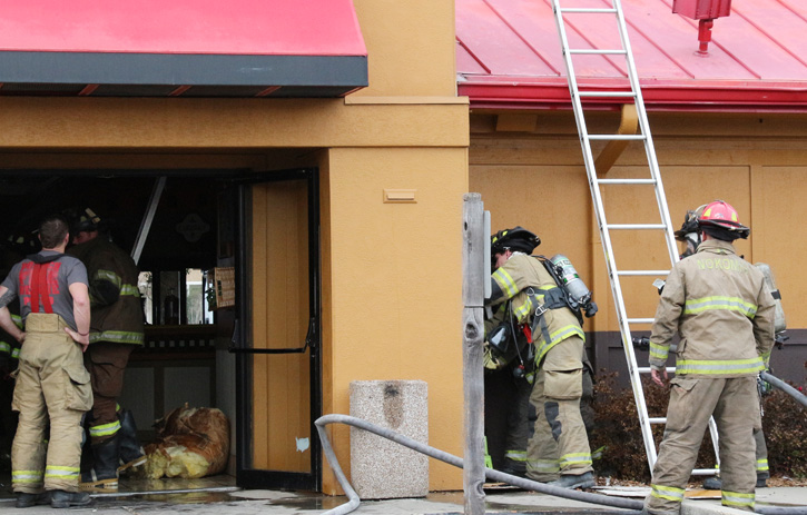 Restaurant employees reported smoke coming from the ceiling inside the restaurant about 3:20 p.m. The first firefighters on scene reported finding fire in exterior wall and in the ceiling and possibly the attic of the business. The fire was quickly brought under control.
