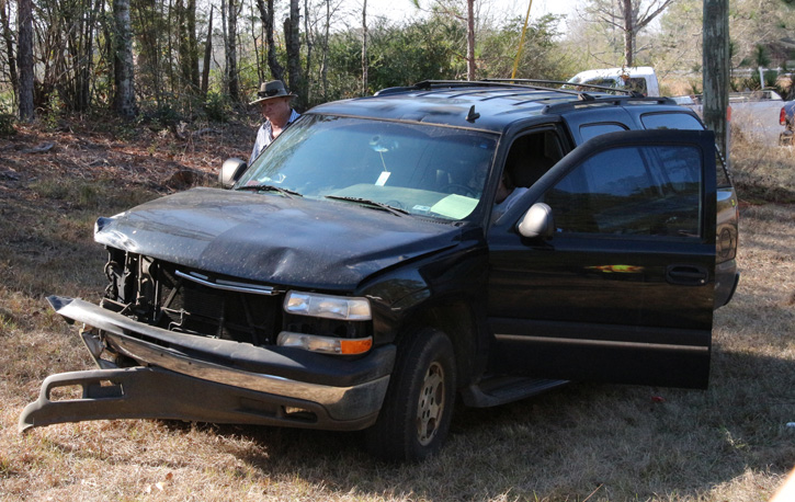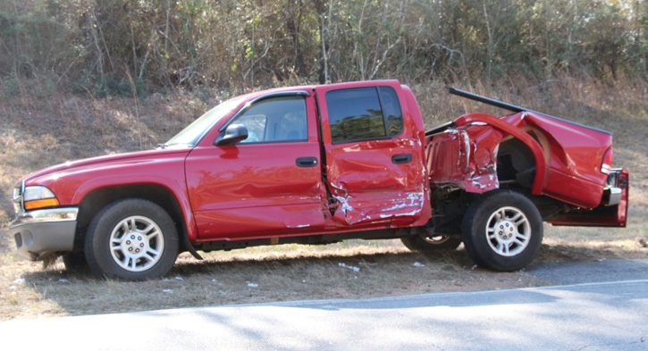 Pictured: A two vehicle crash Sunday afternoon in Bratt. The red pickup had been removed from the roadway prior to this photo. NorthEscambia.com photos, click to enlarge.