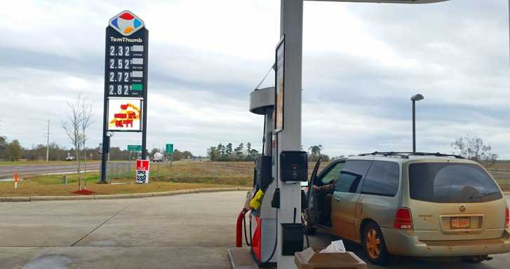 Pictured: The Tom Thumb in Molino was at $2.32 per gallon of regular unleaded on Monday, but that price had fallen to $2.29 by Thursday. NorthEscambia.com photos, click to enlarge.