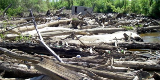 Pictured top: A logjam stretches bank to bank, blocking the Escambia River near McDavid. Photo for NorthEscambia.com, click to enlarge.