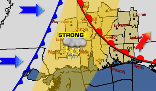 - Tonight Showers and thunderstorms. Some storms could be severe, with heavy rain. Low around 61. South wind 10 to 15 mph. Chance of precipitation is 100%.