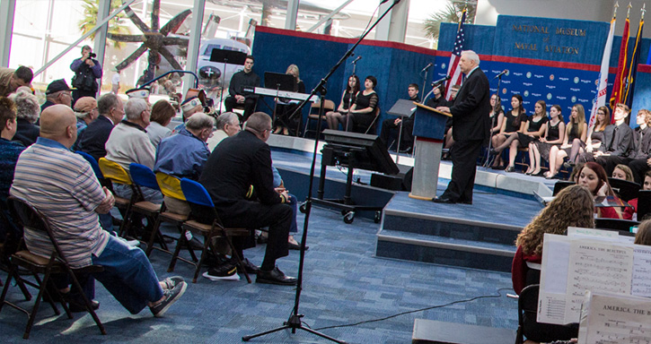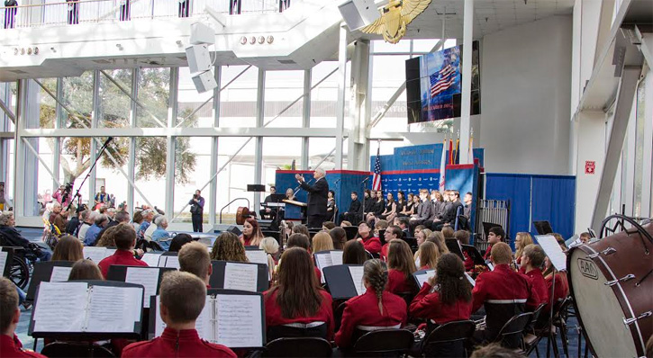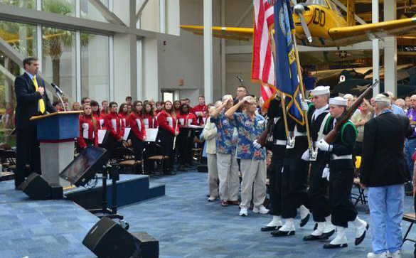 Pearl Harbor survivors were honored Friday morning during a World War II Remembrance ceremony at the National Aviation Museum. The Wind Ensemble from the Tate High School Band took part in the event. Photos courtesy NAS Naval Aviation Museum and RustyBuggy.com for NorthEscambia.com, click to enlarge.