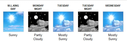 - Wednesday Mostly sunny, with a high near 63. North wind 5 to 10 mph.
