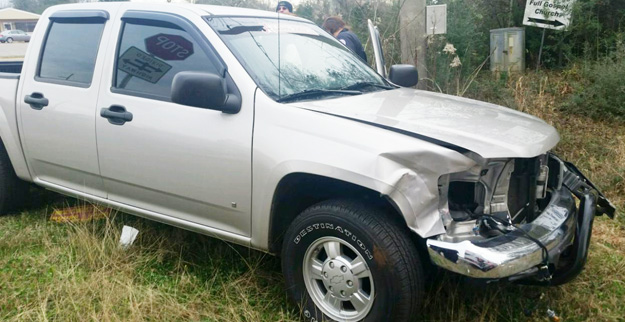 Pictured above: Four people including then 17-year Jessica Imholz, were injured in the this Nissan in a two vehicle accident late in the afternoon of November 20, 2009, in Century. Pictured below: The driver of this GMC truck was not injured. NorthEscambia.com file photos, click to enlarge.