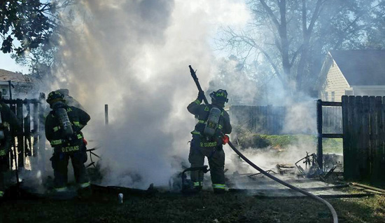 Fire destroyed a detached shed and a privacy fence Thursday morning. The fire was reported about 9:25 in the 500 block of Templehill Street, near the intersection of East Kingfield and Chemstrand roads. There were no injuries and no damage to any adjacent homes reported. NorthEscambia.com photos by Kristi Price, click to enlarge.