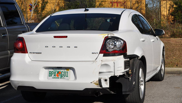 The train clipped the back bumper of the vehicle, causing relatively minor damage to the Dodge. Collier continued to a nearby parking lot. He was not injured.