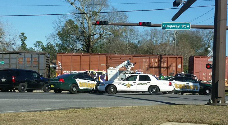 About 1:30 p.m., a CSX engineer reported that his train had struck an occupied vehicle at the East Kingsfield Road crossing at Highway 95A. Ryan Collier, age 22 of Pensacola, had stopped his 2013 Dodge Avenger in traffic on East Kingsfield while waiting for the red traffic light at Highway 95A. The Dodge was not on the railroad crossing, but it was not fully clear from the path of the northbound CSX train, according to the Florida Highway Patrol.