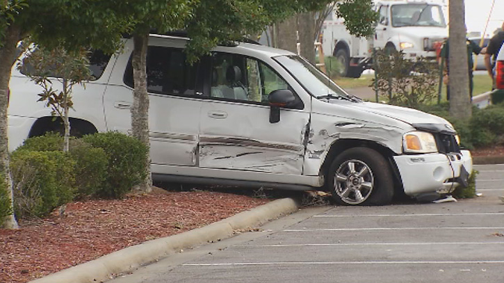 A man that was allegedly responsible for a shooting and stealing both a police cruiser and a SUV was taken into custody after a crash in front of an Escambia County Walmart.