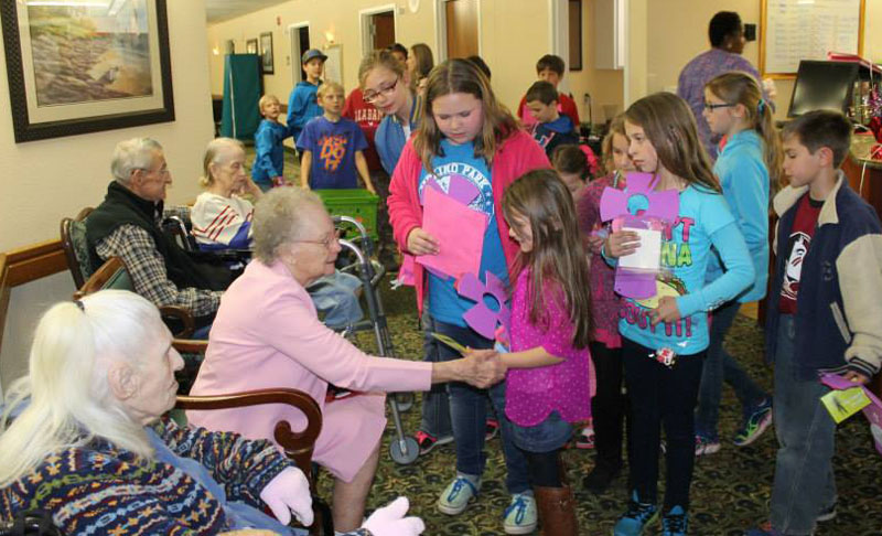 Children from Highland Baptist Church recently visited with residents of the Health Care Center of Pensacola. The children delivered handmade Valentine’s cards with a special message.