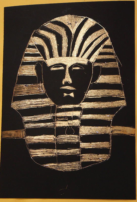 Each student contributed work inspired by lessons about art from different time periods to art inspired by studying well-known masterpieces. Visitors found a variety of art styles from interpretations of Vermeer’s “Girl with a Pearl Earring,” to attempts to recreate VanGogh’s “Starry Night.” Also, there was art inspired by history and flights of fancy, like fire breathing flying dragons.