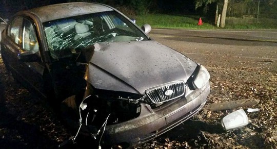There were no injuries when a driver lost control and hit a pole on Chemstrand Road Sunday night. The accident occurred about 8:35 in the 2200 block of Old Chemstrand Road, near Longbranch Drive. NorthEscambia.com photo by Kristi Price, click to enlarge.