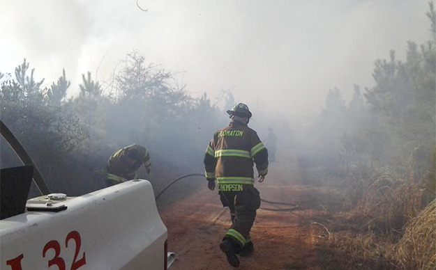 Firefighters from multiple departments in Alabama were aided by firefighters from Century, McDavid and Jay into the night. Late Saturday night, the Alabama Division of Forestry was still on the scene working with bulldozers to containthe wildfire.