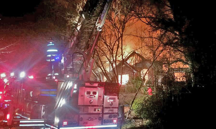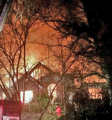 The fire was reported just before 8 p.m. in the 4500 block of Baybrook Drive. The two-story, 5,100 square foot house was fully involved when firefighters arrived on scene. Within a short period of time, three of four sides of the home had collapsed.