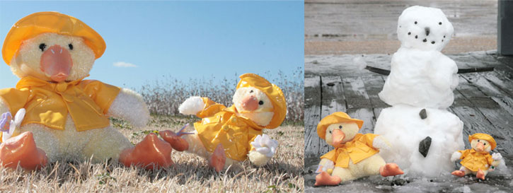 This was only the second time in the history of our weather ducks that they have predicted more winter. For those that might be a little unsure as the weather ducks’ ability, we offer the two photographs below showing the weather ducks predicting six more weeks of winter on Groundhog Day 2010 and 10 days later with their snowman in Atmore.