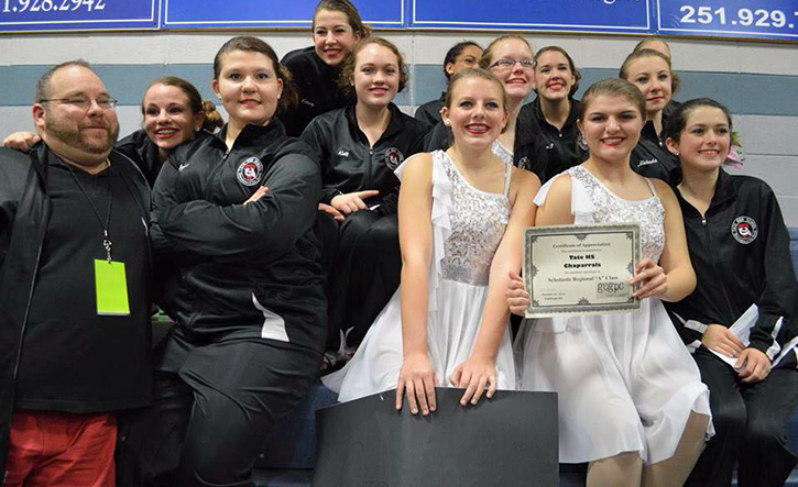 The Tate High School Chaparrals winter guard team won first place in the Scholastic Regional “A” Class Saturday at Fairhope High School. Chaparrals members are Katie Dupre, Celina Dyess, Breanna Langley, Megan Leonard, Katy Luebke, Jo Jo O’Steen, Michaela Overbey, Madison Philley, Brenn Repine, Kelsey Strength, Virginia Vaughn and Savannah VonStein.